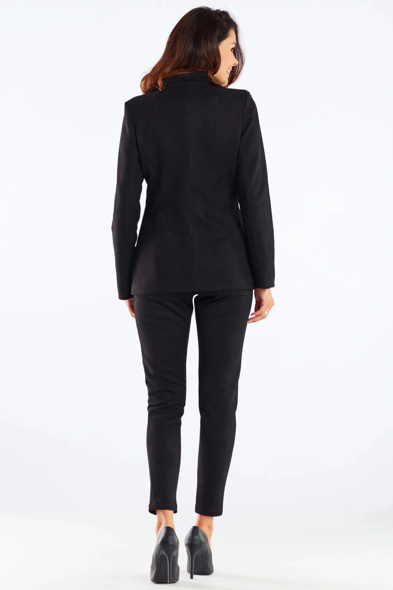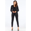 Jednoduché dámske nohavice cigarového strihu. Zúžený smerom dole, vybavený. Vysoký strih nohavíc zvýrazní pás. Vďaka saku z našej ponuky si môžu vytvoriť kompletný oblek na obchodné schôdzky, rodinné oslavy alebo prácu v kancelárii. Jednoduché cigary sú nevyhnutnou súčasťou každého šatníka. Produkt je vyrobený v Poľsku.