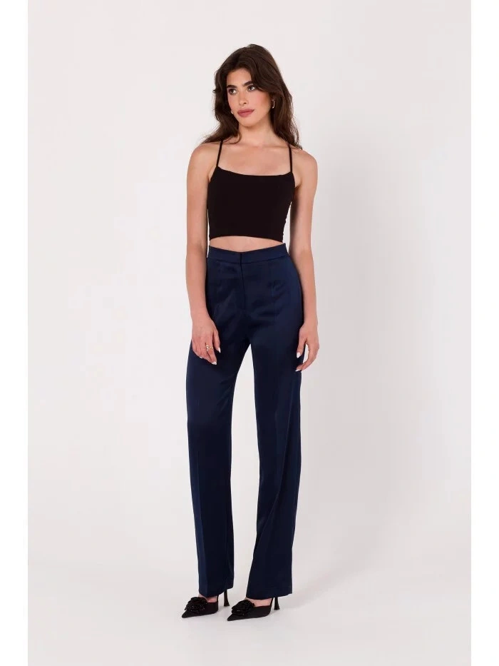 PODROBNOSTI O VÝROBKU: tkaná saténová látka nohavice s rovnými nohavicami so zipsom a háčikom vpredu bez podšívky Naša modelka je vysoká 168 cm a nosí veľkosť S Navrhnuté a vyrobené v Poľsku