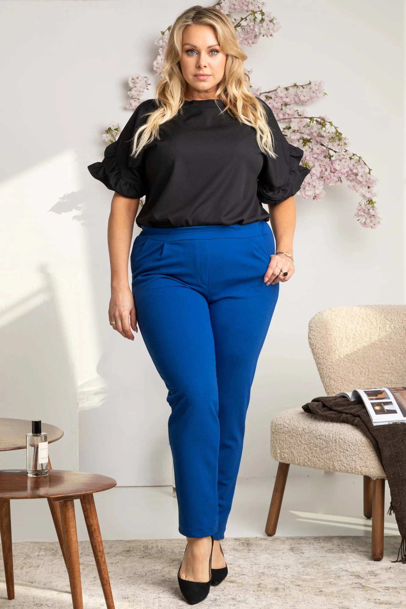 60% Polyester 35% Viskóza 5% Elastan Kolekcia: Jar/Leto/Jeseň/Zima Farba: Modrá Pohlavie: Ženské Kategória: Dámske oblečenie | Nohavice
