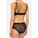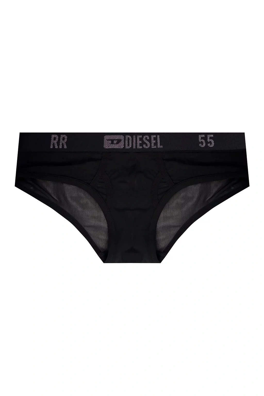 Čierne nohavičky od Diesel. Tento pár je vyrobený z polopriehľadné sieťoviny a má elastický pás zdobený logom štítku vyšívaným striebornou lurexovou priadzí.