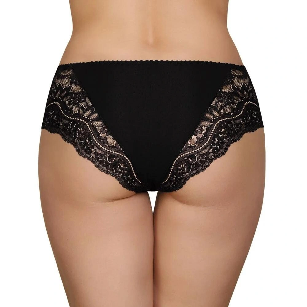 Elegantné dámske nohavičky Modo 114 s klasickým strihom. Dámske nohavičky sú vyrobené z veľmi príjemnej bavlny a na zadnej strane ich zdobí krásna kvalitná elastická čipka. Dámske nohavičky sú dostupné v čiernej farbe.