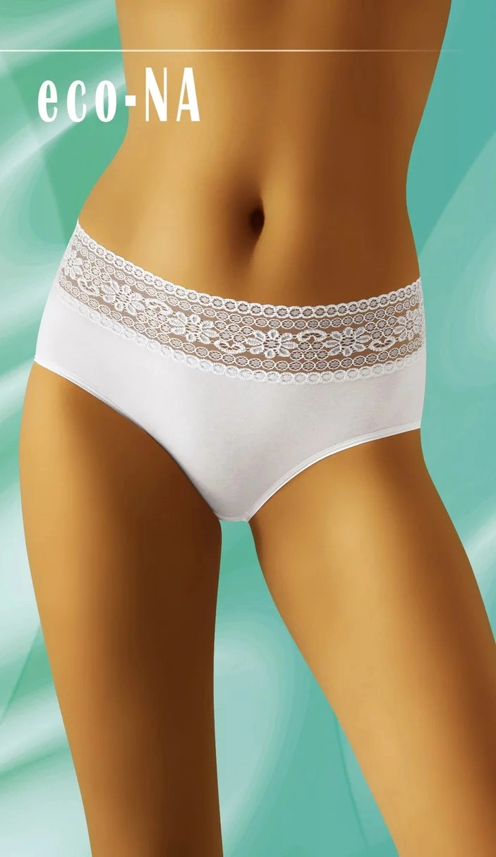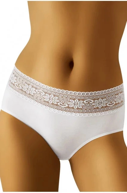Dámske bavlnené nohavičky, vrchná časť je zdobená širokou kvetinovou čipkou. Veľkosti: M (obvod pása 56-64 cm), L (64-74 cm), XL (74-84 cm), XXL (84-94 cm)