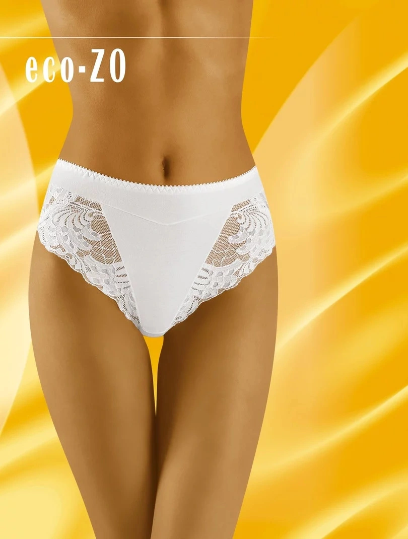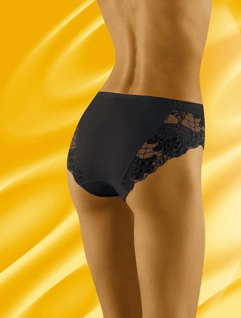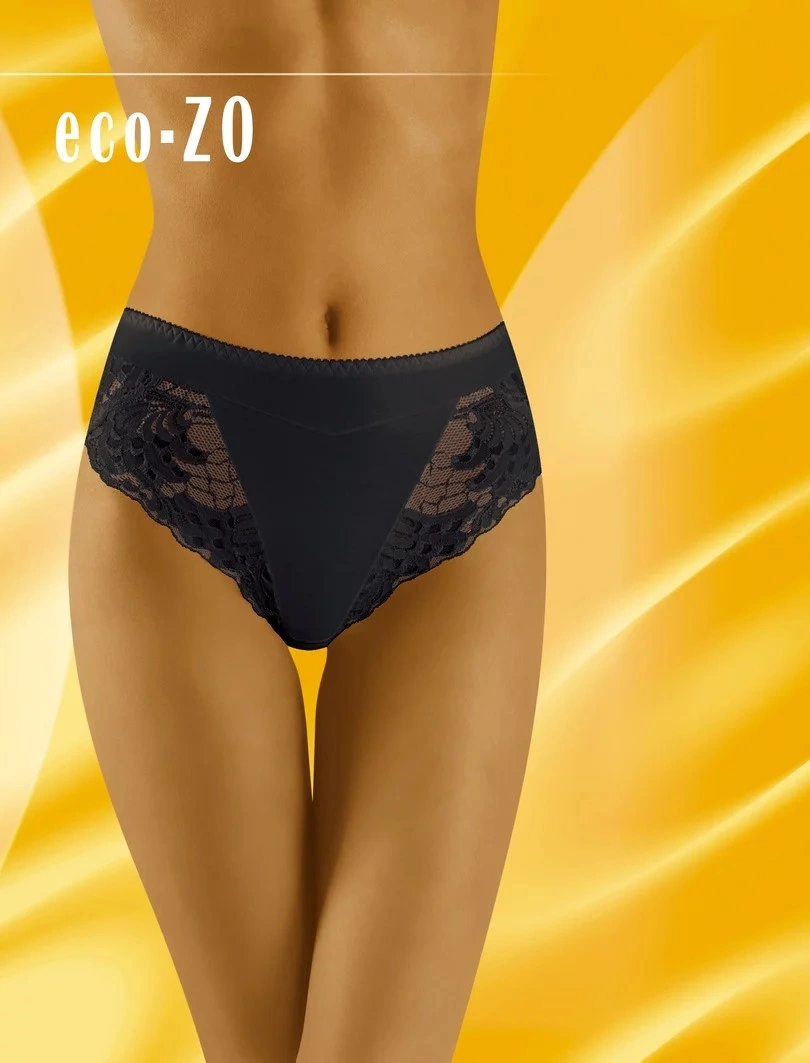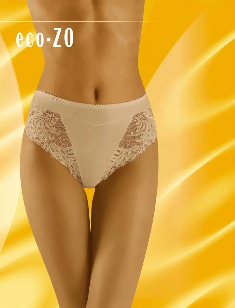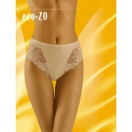 Nohavičky sú bohato zdobené čipkou. Model zdobí originálny vzor pávích pierok. Body je pekne zdobené a vďaka tomuto vzoru vyniká a zároveň je pohodlné.