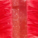 spoločenské a večerné šaty zdobené okolo výstrihu a vertikálne v prednej časti šiat ozdobnými pruhmi s trblietkami. Predná časť šiat je zdobená riasením. Rukávy sú tiež nariasené. Šaty sú len mierne elastické a zapínajú sa na skrytý zadný zips. Šaty sú vybavené spodničkou a majú vystužené košíčky.