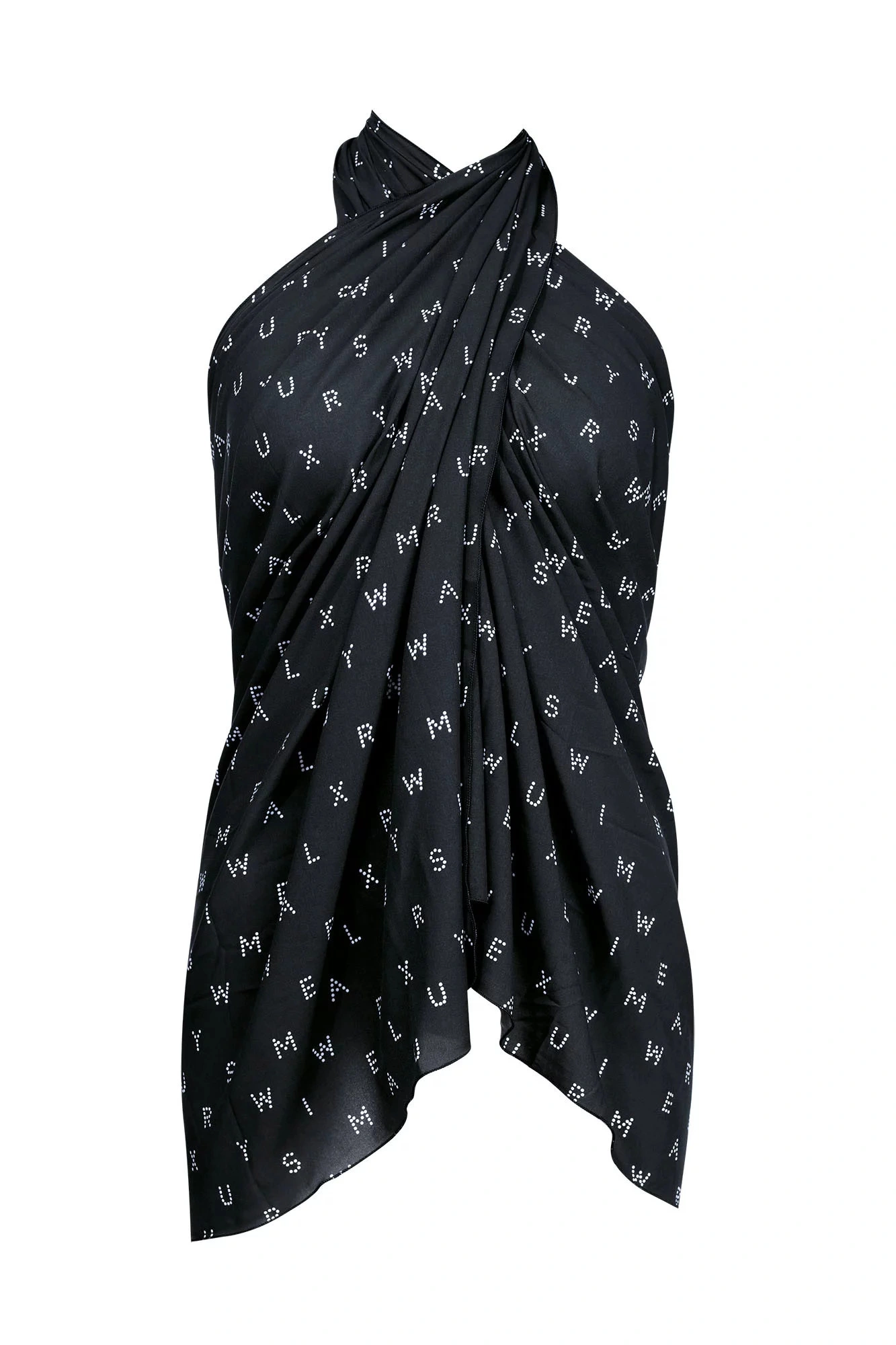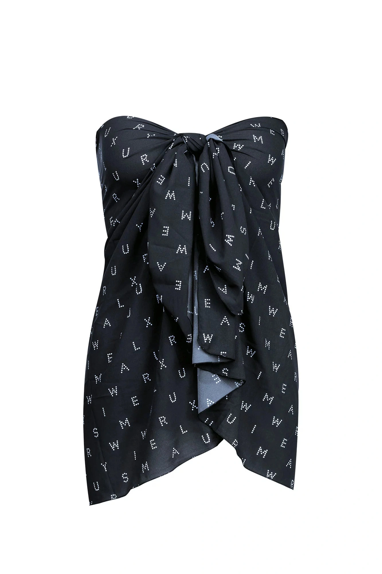 Dámske plavkové pareo v bielo-čiernej alebo čierno-bielej kombinácii, s potlačou písmen. Je ho možné nosiť na mnoho spôsobov. Rozmery 163x103 cm