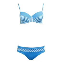 Dámske dvojdielne plavky, spodný diel klasického strihu, vrchný diel vystužený, s kosticou, hrubé ra