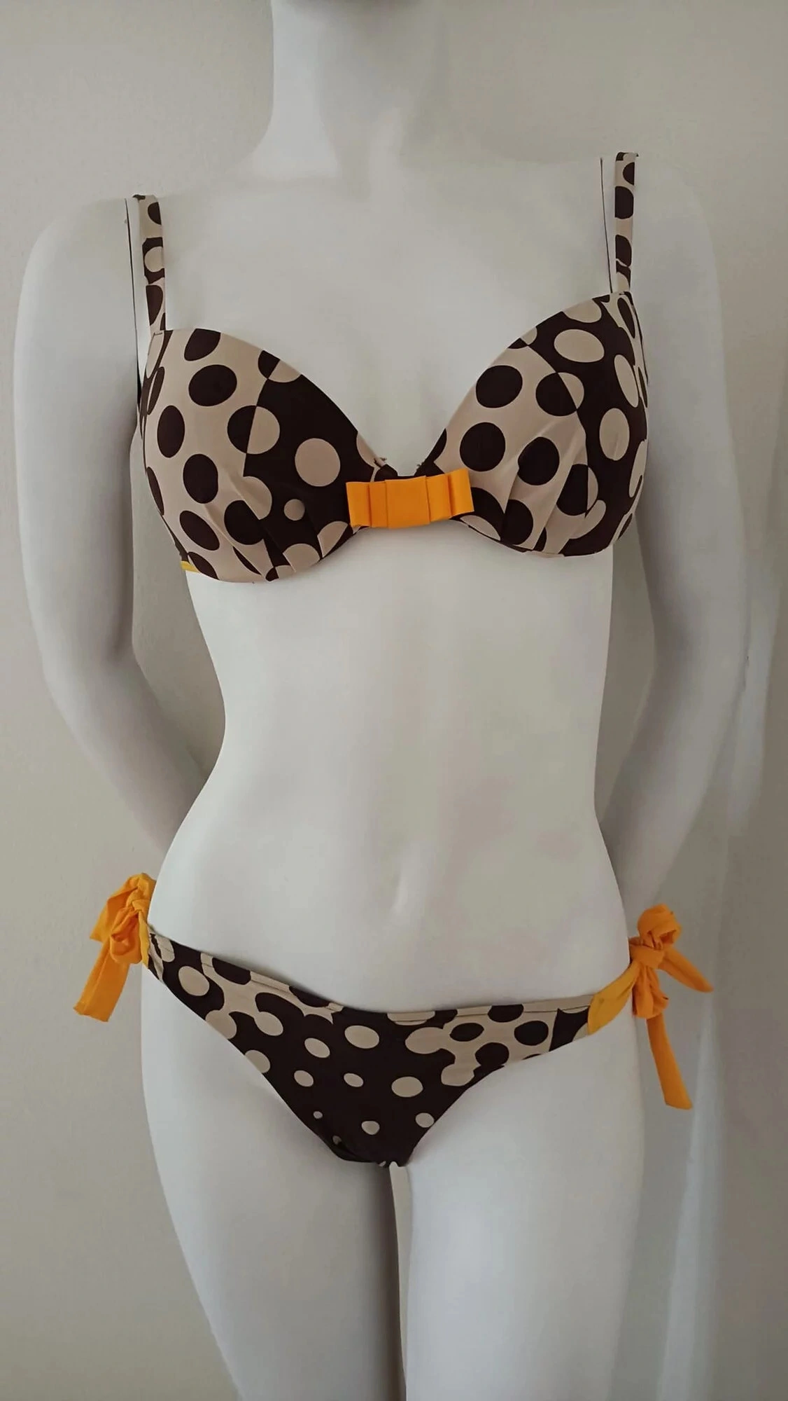 - Dievčenské dvojdielne plavky. - Vrchný diel trojuholníkového strihu, na posúvanie. - Zaväzovanie n