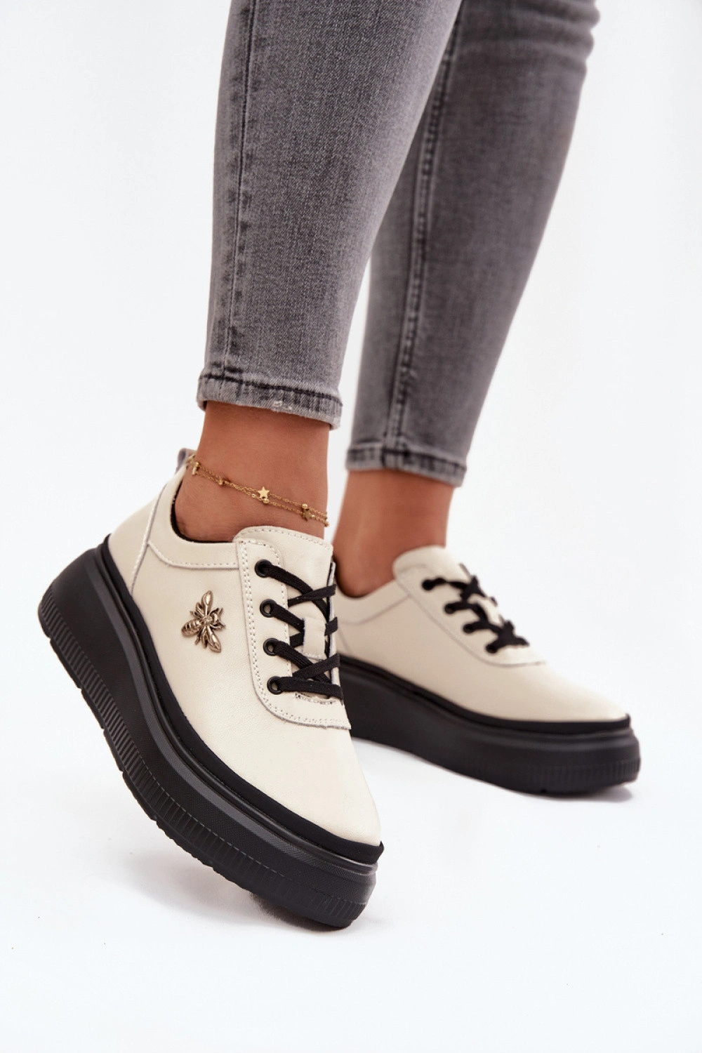 Dámske poltopánky Vinceza sú vyrobené z prírodnej kože a spájajú v sebe klasický a moderný štýl. Sú osadené na platforme, ktorá zabezpečuje stabilný krok a opticky predlžuje nohy, a klasické šnurovanie umožňuje ideálne prispôsobenie sa nohe. Mäkká kožená stielka zaručuje pohodlie počas celého dňa a roztomilá pracka na boku zvršku dodáva topánkam jemný módny akcent, ktorý ich zvýrazní pri každodenných štylizáciách. Perfektne sa hodia na bežné aj trochu elegantnejšie kombinácie.