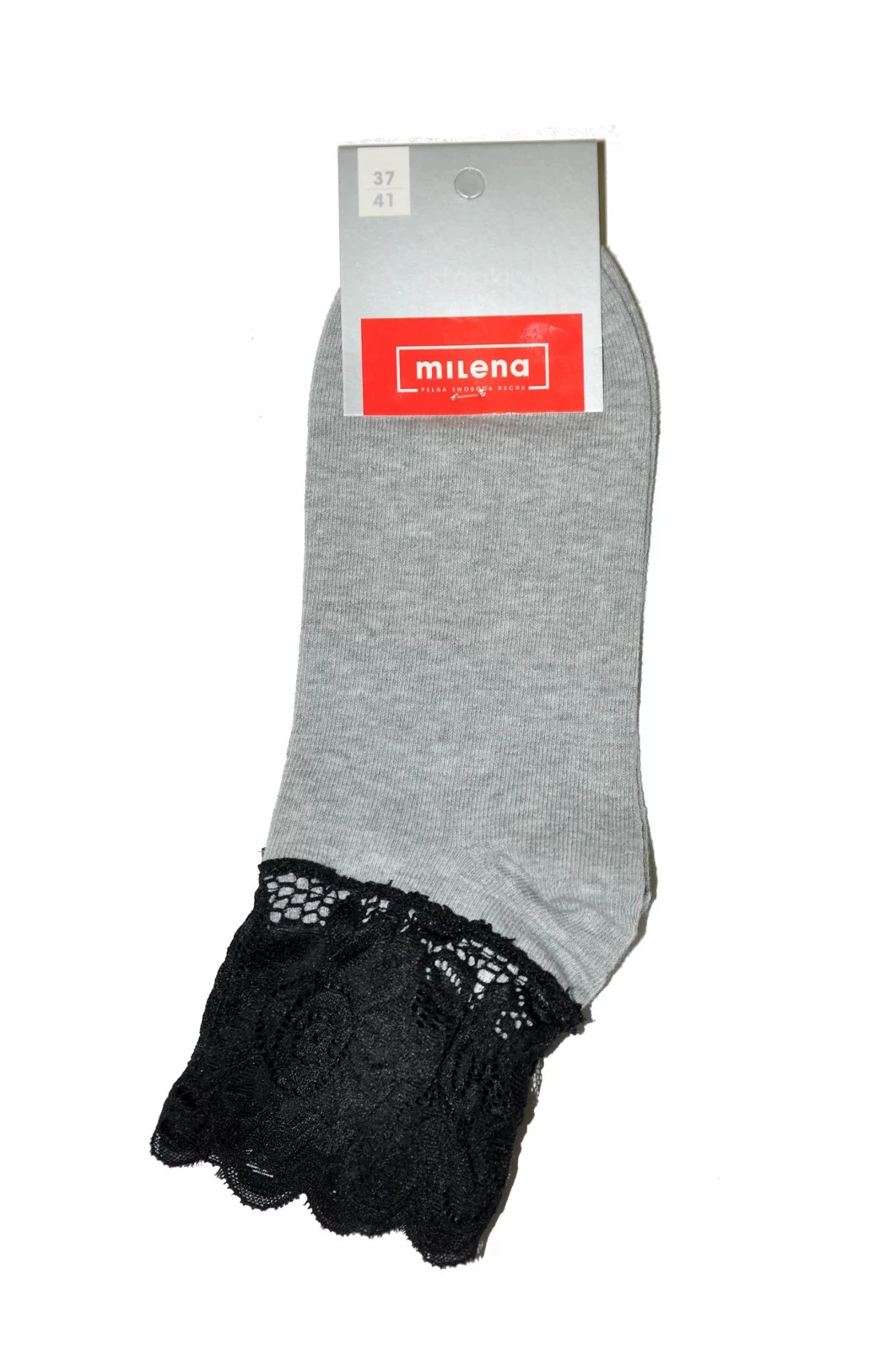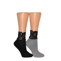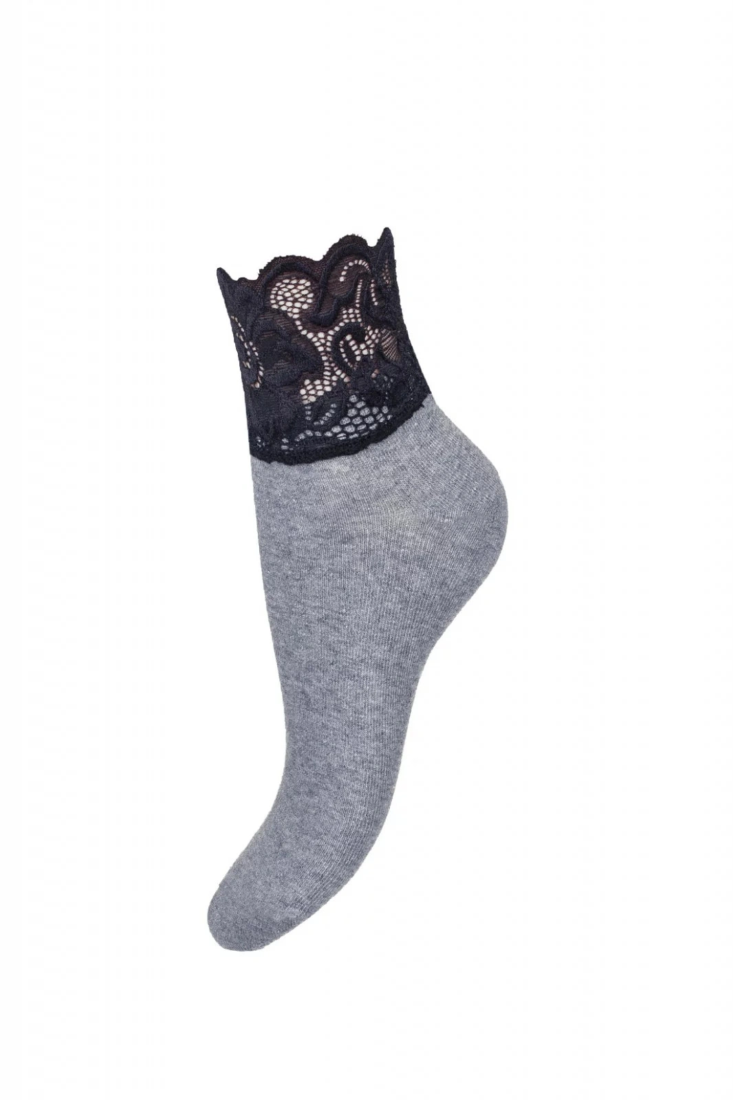Dámske ponožky, ktoré sú vyrobené z vysokokvalitnej bavlny. Lem modelu je zdobený širokou čipkou.