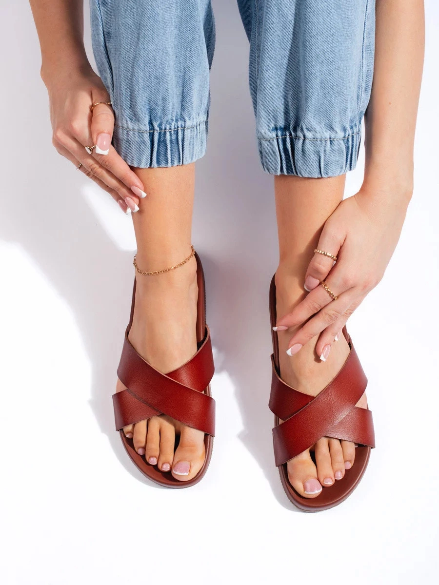 Dámske sandále z kvalitnej ekokože, ideálne na teplé dni. Dva prepletené remienky v prednej časti do