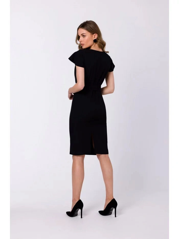 Originálne plášťové šaty s dodatočnou ozdobnou vrstvou látky, opásané v páse opaskom s gombíkom. DETAILY PRODUKTU: tkané plášťové šaty s asymetrickou dvojitou vrstvou vpredu krátke rukávy dĺžka po kolená nepodšité zapínanie na gombíky opasok je pripevnený Naša modelka je vysoká 174 cm a nosí veľkosť S