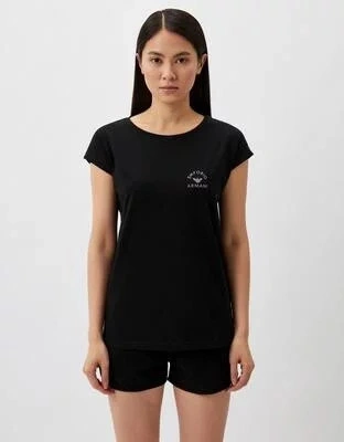 S potešením vám predstavujeme dvojdielny pyžamový set z kolekcie "Sustainability" od Emporio Armani, ktorý je stelesnením elegancie a pohodlia. Táto krásna súprava pozostávajúca z trička s krátkym rukávom a šortiek je určená pre ženy, ktoré oceňujú vysokú kvalitu a jemnú estetiku.