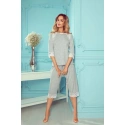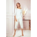 Nohavice a nohavice s dĺžkou 3/4 sú zdobené čipkou. 3/4 rukávy sú tiež zdobené čipkou. Blúzka pyžama má lodičkový výstrih. Pyžamo je dostupné v piatich farebných variantoch.