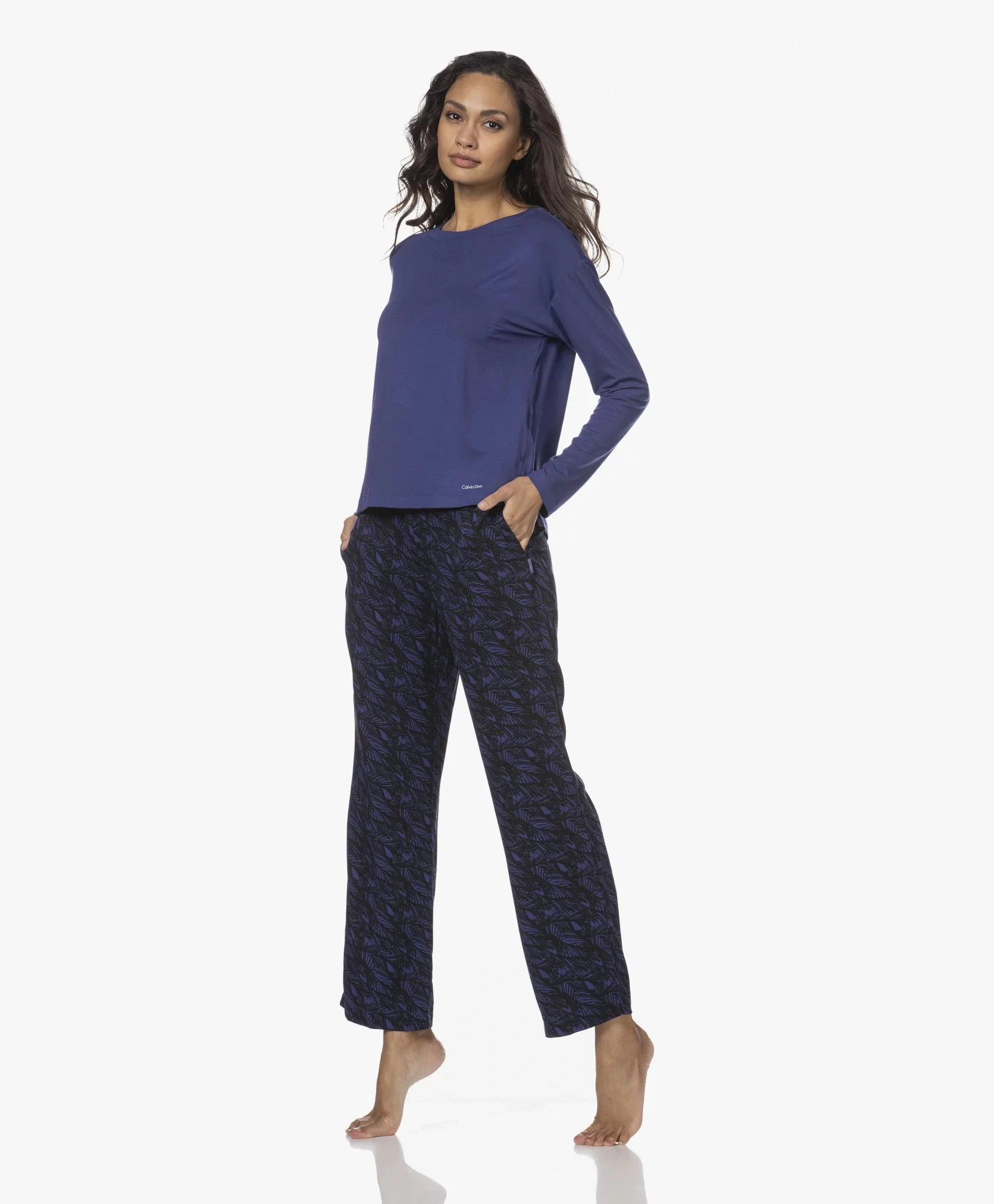 Dámske pyžamové nohavice QS6028E VFR - modročierna - Calvin Klein S modro - černá