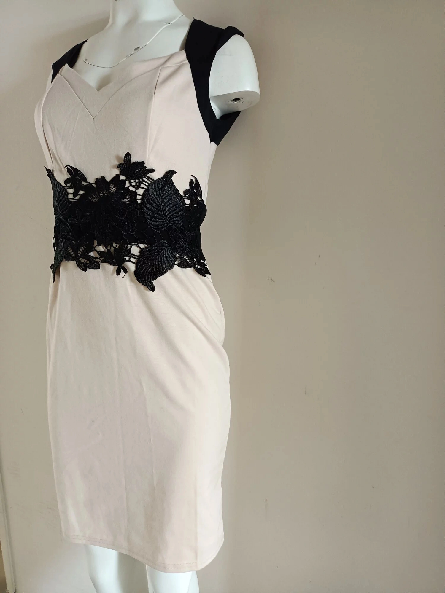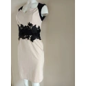 Dámske krátke šaty bez rukávov, v páse čierna vsadka vpredu s našitou veľkou luxusnou čipkou.