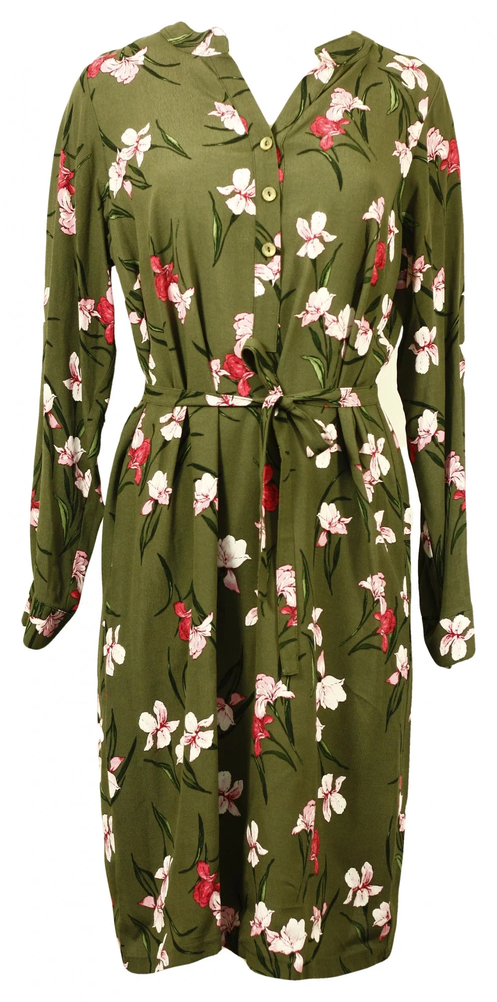 Dámske rozšírené košeľové šaty B257 olivové - BEwear