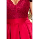 Dámske šaty 242-2 Numoco - krátke rukávy - výstrih do V - dĺžka šiat siaha nad kolená - sukňa má rozšírený strih - čipkovaný vrchný diel