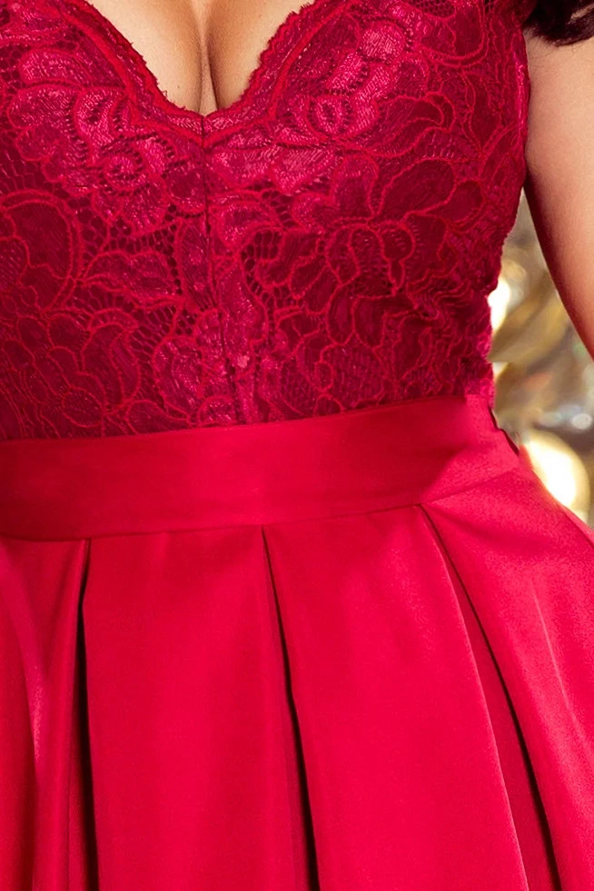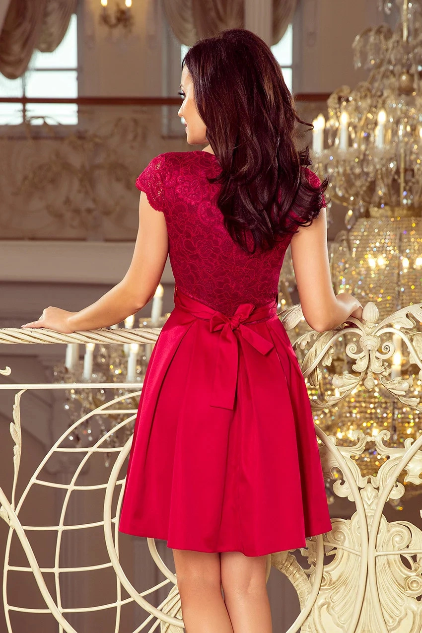 Dámske šaty 242-2 Numoco - krátke rukávy - výstrih do V - dĺžka šiat siaha nad kolená - sukňa má rozšírený strih - čipkovaný vrchný diel