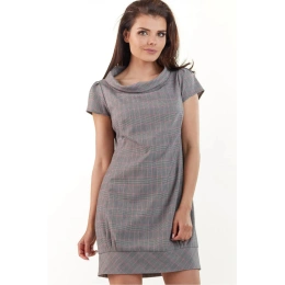 Zajímavé šaty z kostkované látky. Šaty s ozdobným decentním límcem. Ve spodní části je zakončena jemným lemem. Šaty mají krátké rukávy.