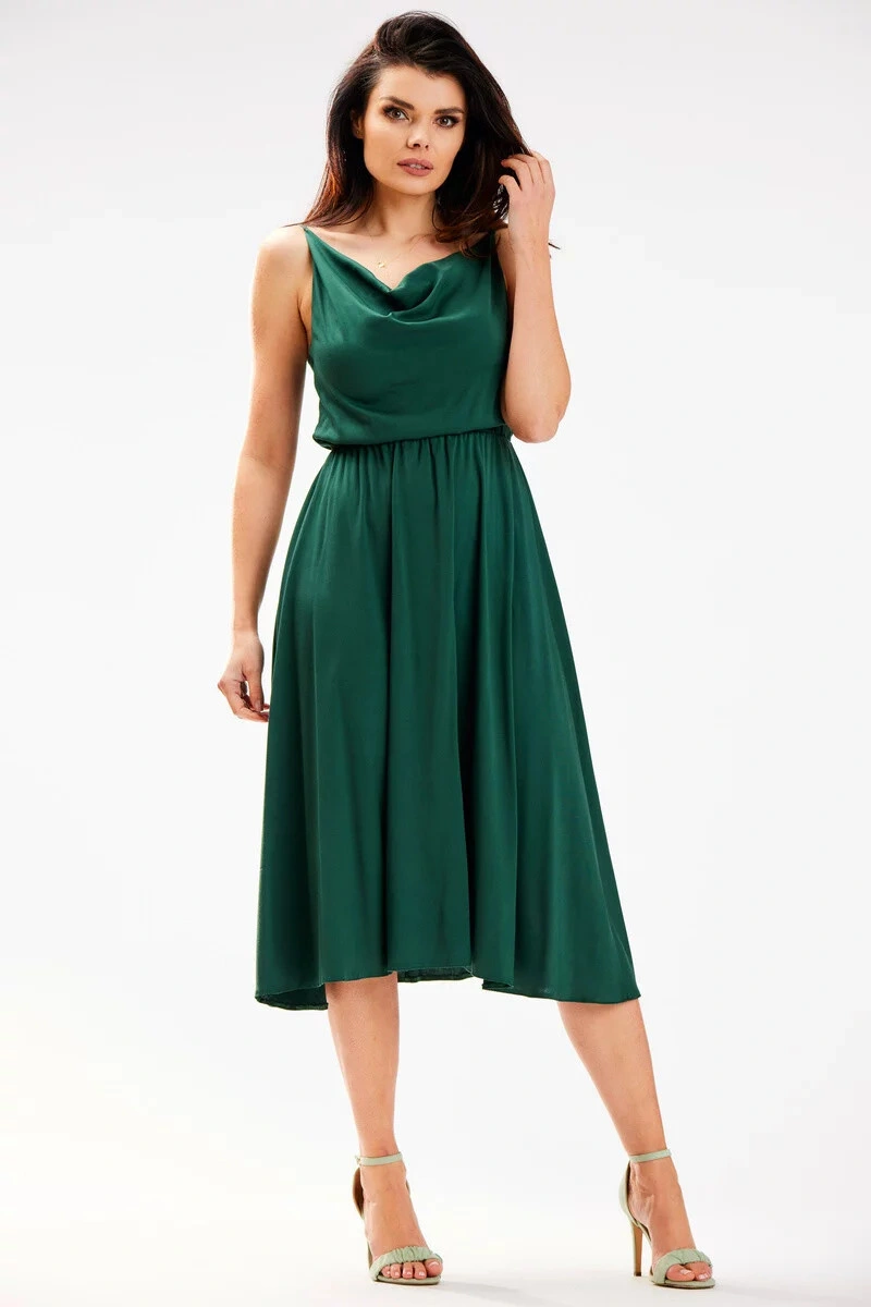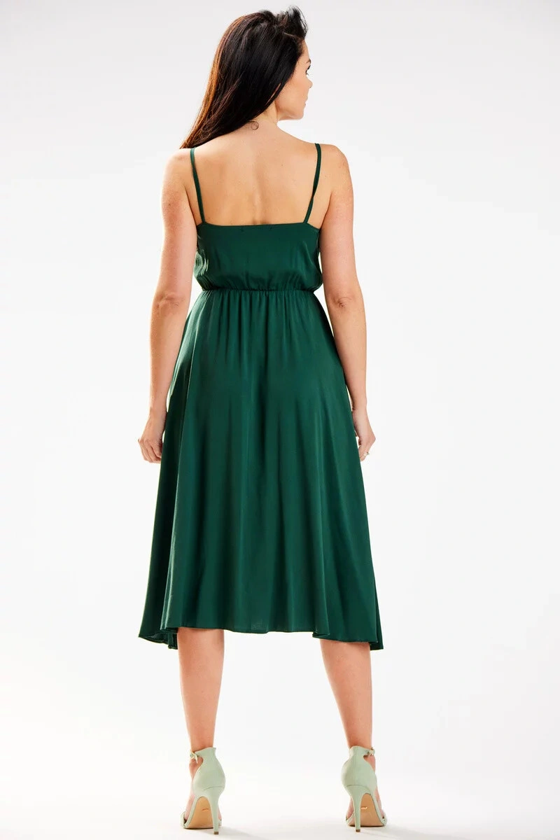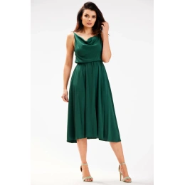 Dámske midi šaty s vodou vo výstrihu a gumou v páse. Ľahké, vzdušné šaty bez ramienok, ideálne na každú príležitosť!