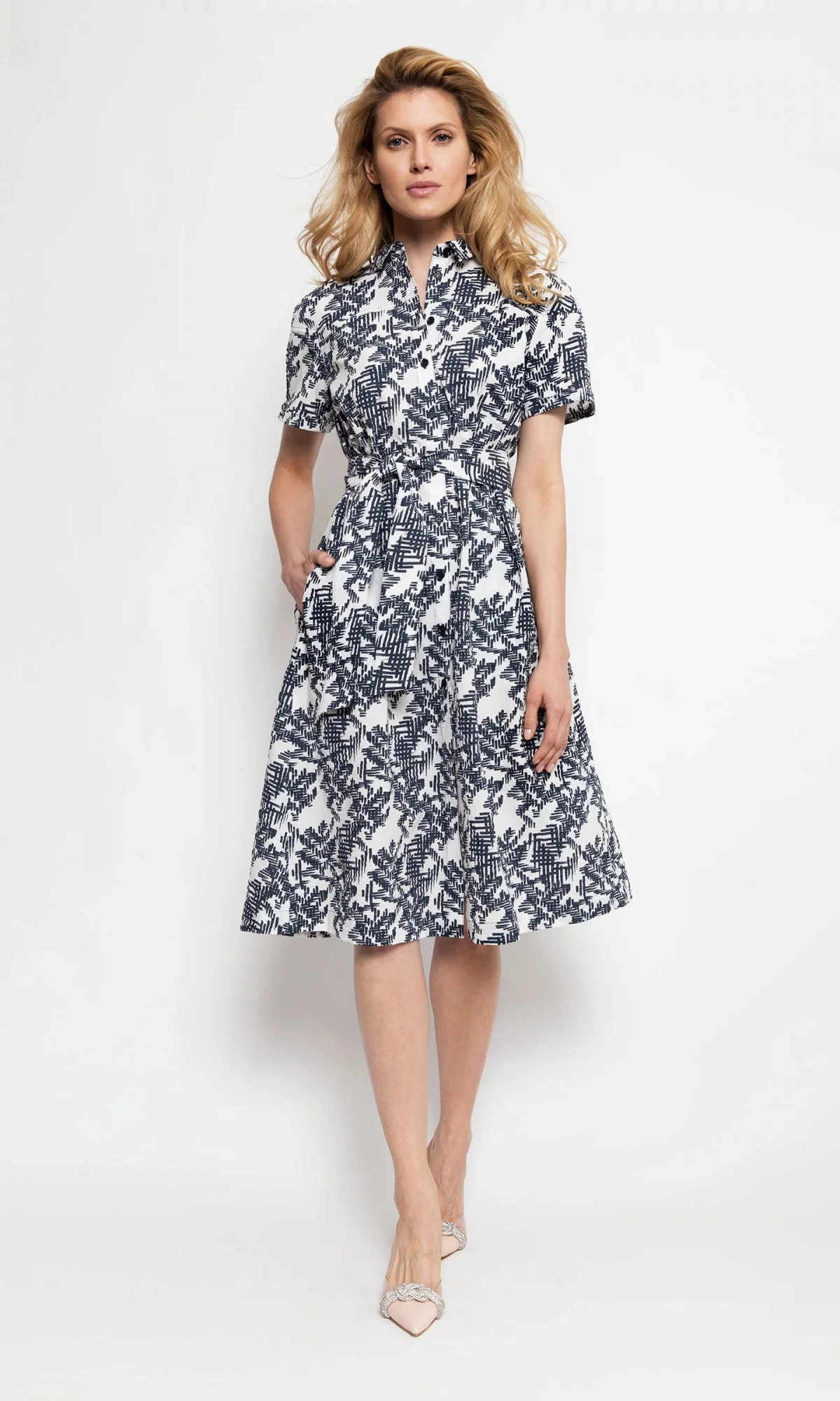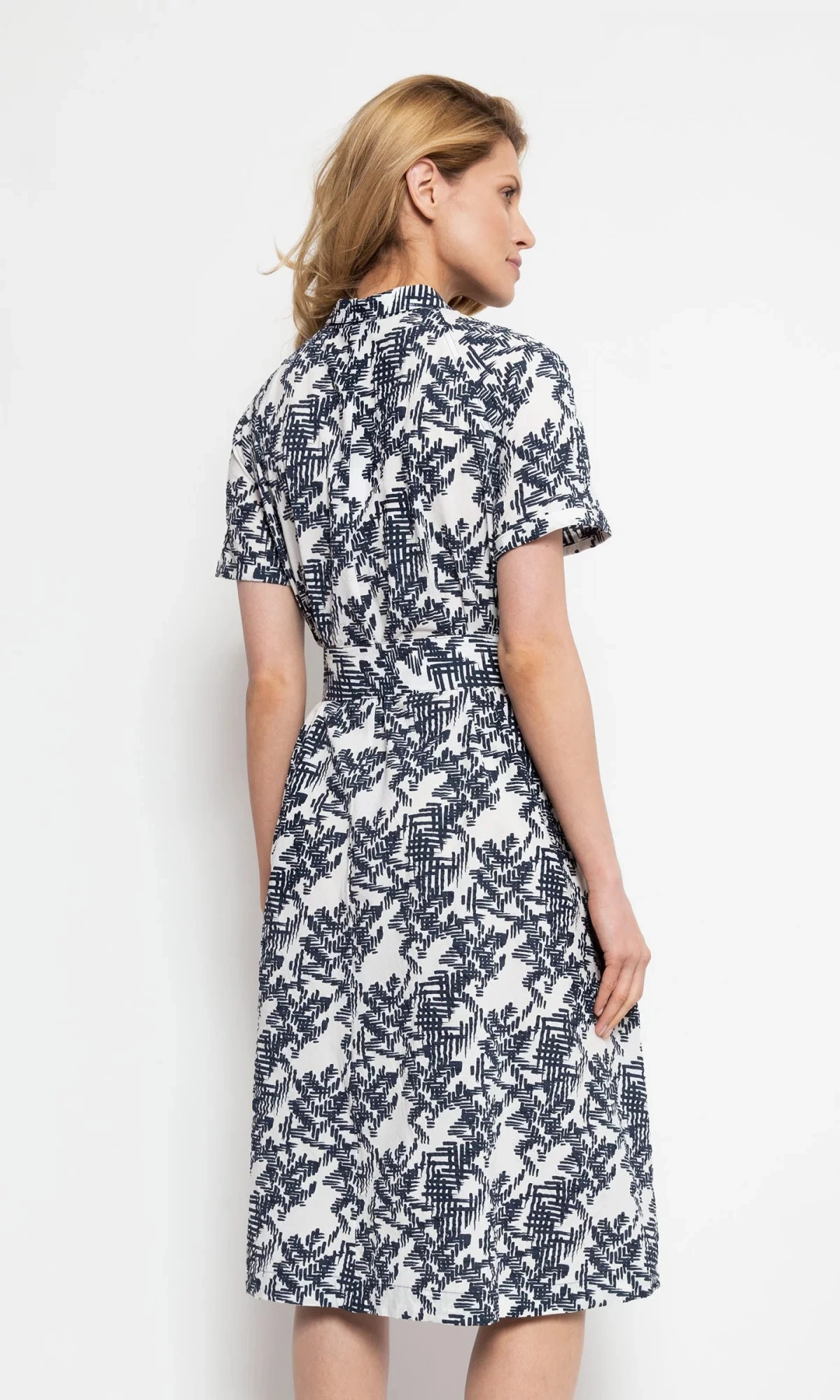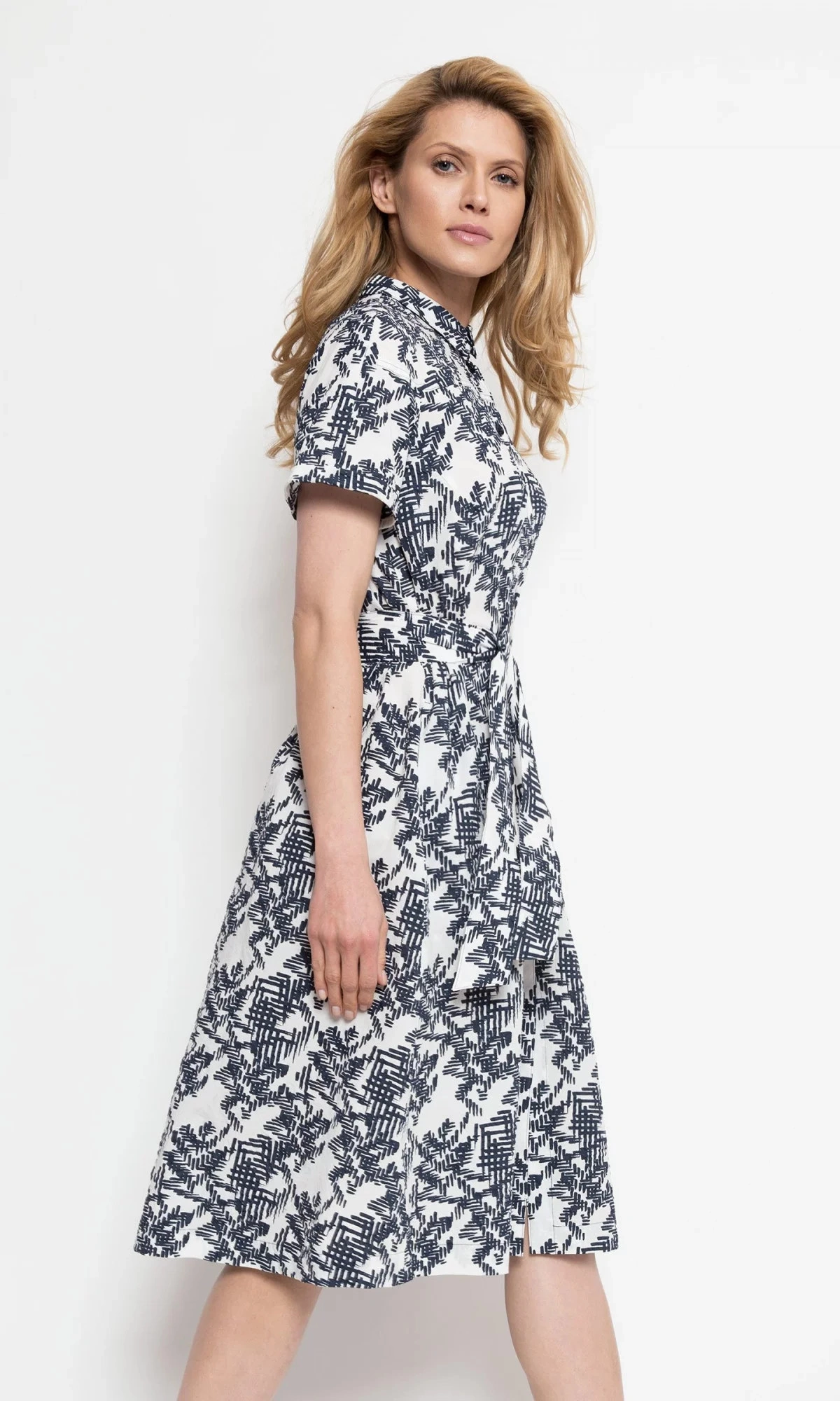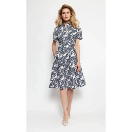 Dámske bavlnené košeľové šaty s krátkym rukávom, s tmavou potlačou a opaskom v páse.100% bavlna Pokyny pre starostlivosť: Pokyny pre pranie: Ručné pranie alebo profesionálne chemické čistenie Kolekcia: jar/leto Pohlavie: ženské