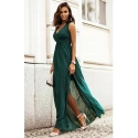 Výnimočné šifónové maxi šaty, ktoré urobia veľkolepý dojem. Toto je naša nová Dolores, nechajte sa očariť jej šarmom. Je taká ľahká a vzdušná, že sa s vami bude pri každom pohybe sexi kolísať. Vrchná časť šiat má vpredu a vzadu výstrih do V, ktorý krásne zvýrazňuje líniu poprsia a chrbta. Pre lepšie prispôsobenie je v páse všitá gumička a tiež šnúrka, vďaka ktorej šaty v páse dokonale sedia. Bočný rozparok dodáva ľahkosť a zvýrazňuje opálené nohy. Dokonalý strih zaručuje pohodlie pri nosení šiat. Dolores je skvelý na špeciálne udalosti. Bude tiež ideálnym spoločníkom na prechádzky po pláži. Šaty boli navrhnuté a ušité v Poľsku.