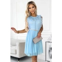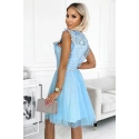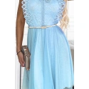GRETA - dámske šaty s čipkou, tylovou spodnou časťou a zlatým opaskom.