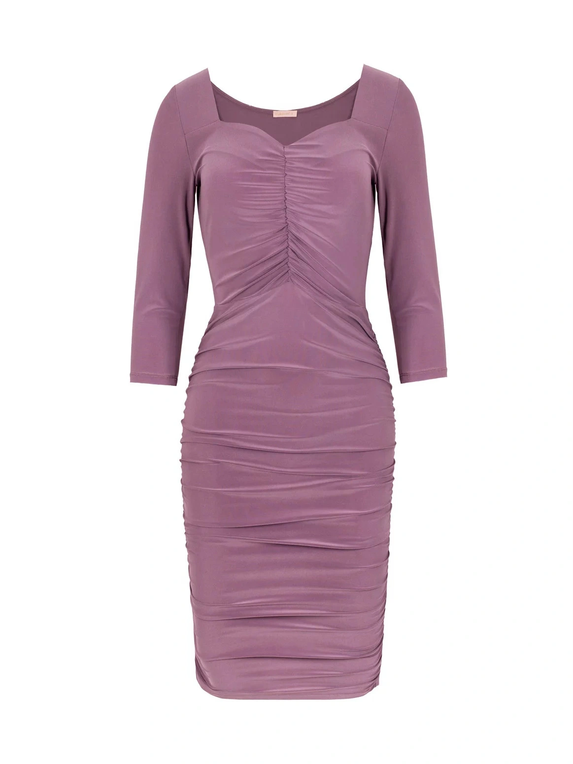 Nádherné vo všetkých ohľadoch. Tieto šaty z pružného úpletu s pekným výstrihom sú elegantné a ohromujúce vďaka svojmu strihu, ktorý obopína krivky a má riasené detaily, midi dĺžku a princeznovský výstrih.