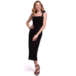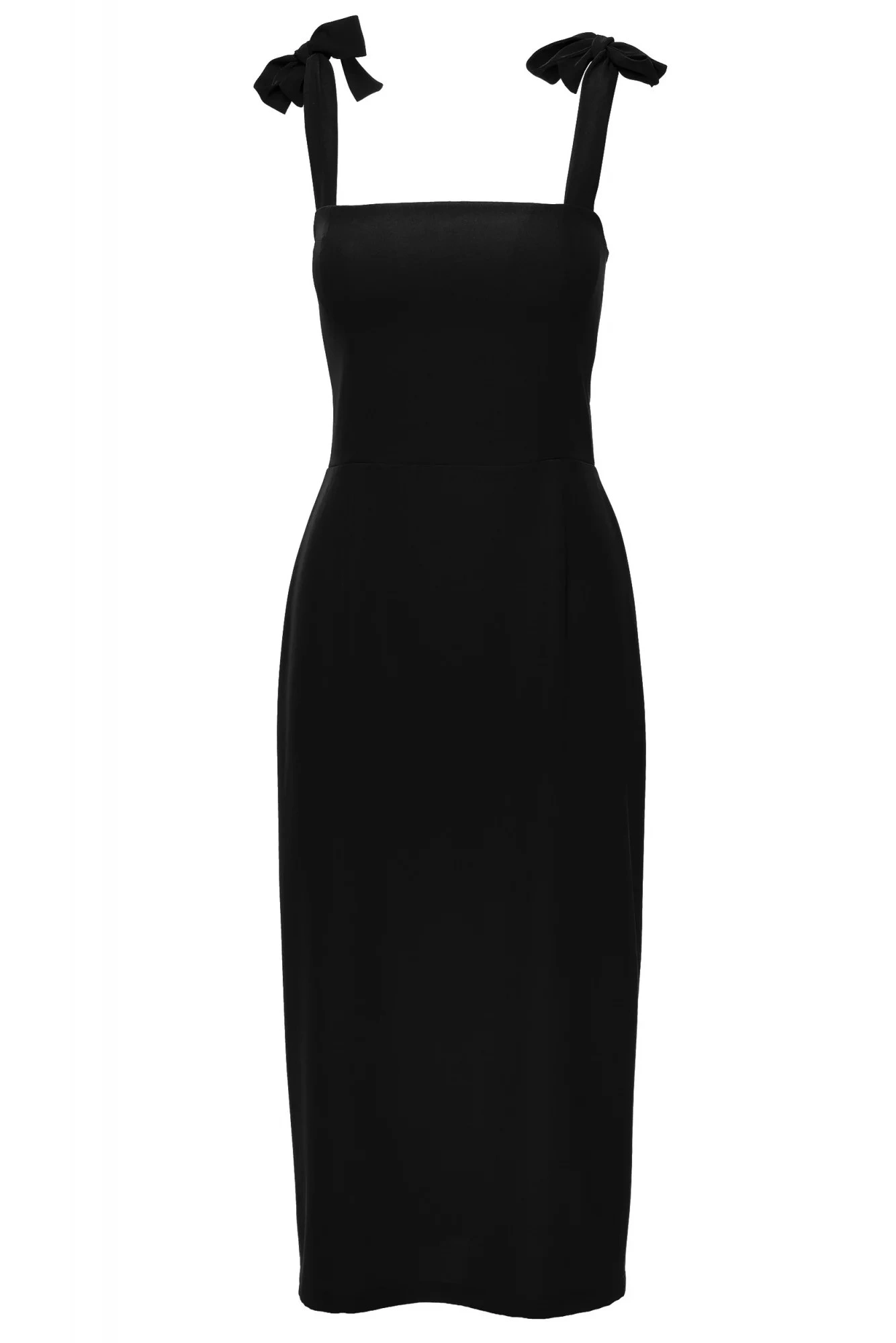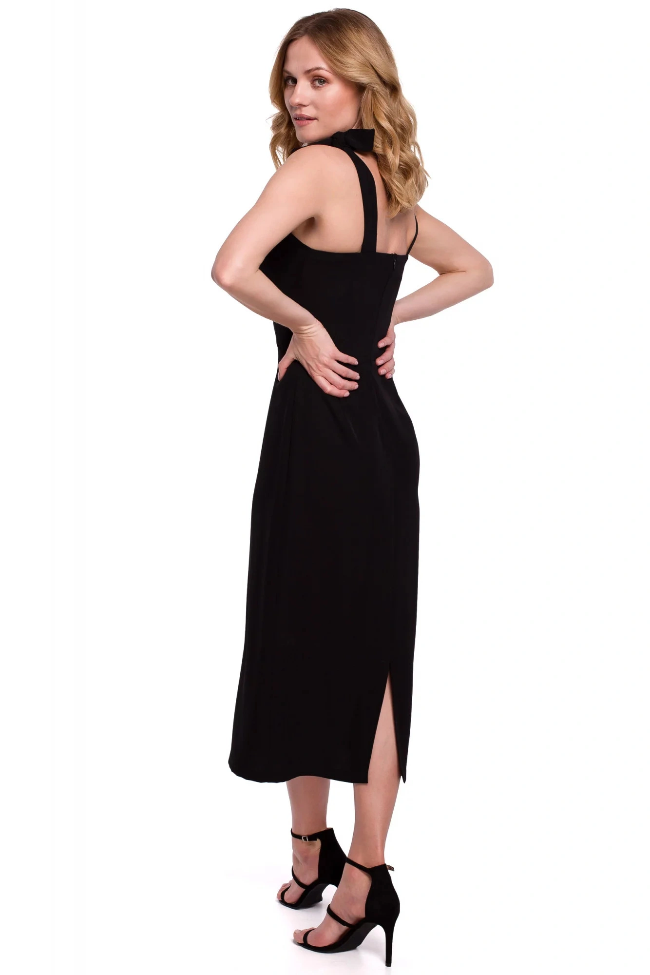 Midi šaty z tkanej látky so zaväzovaním na ramienka, zadný vetrací otvor, bez podšívky, skrytý zips na chrbte.