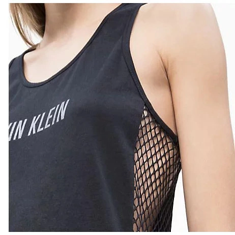 Logo Calvin Kleinna hrudi dodáva šatám výraz a autentickosť.