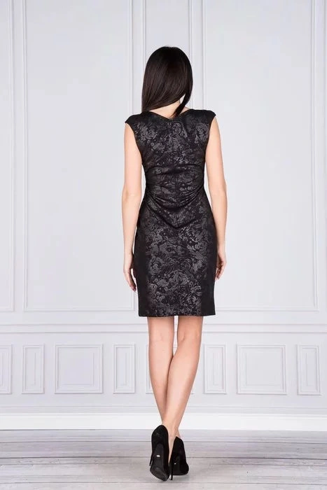 Dámske šaty z kolekcie jar/leto 2017. Priliehavý model s krátkymi rukávmi a výstrihom do V. Jednoduchý strih dopĺňa zaujímavý materiál, z ktorého sú šaty vyrobené. Modelka na obrázku je vysoká 170 cm a má na sebe veľkosť 36/38. Elastan 8% Bavlna 28% Viskóza 34% Polyester 30%