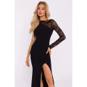 INFORMÁCIE O PRODUKTE: úpletová tkanina a elastická čipka asymetrické maxi šaty s čipkovým rukávom vysoký rozparok vpredu skrytý bočný zips bez podšívky naša modelka je vysoká 171 cm a nosí veľkosť S navrhnuté a vyrobené v Poľsku
