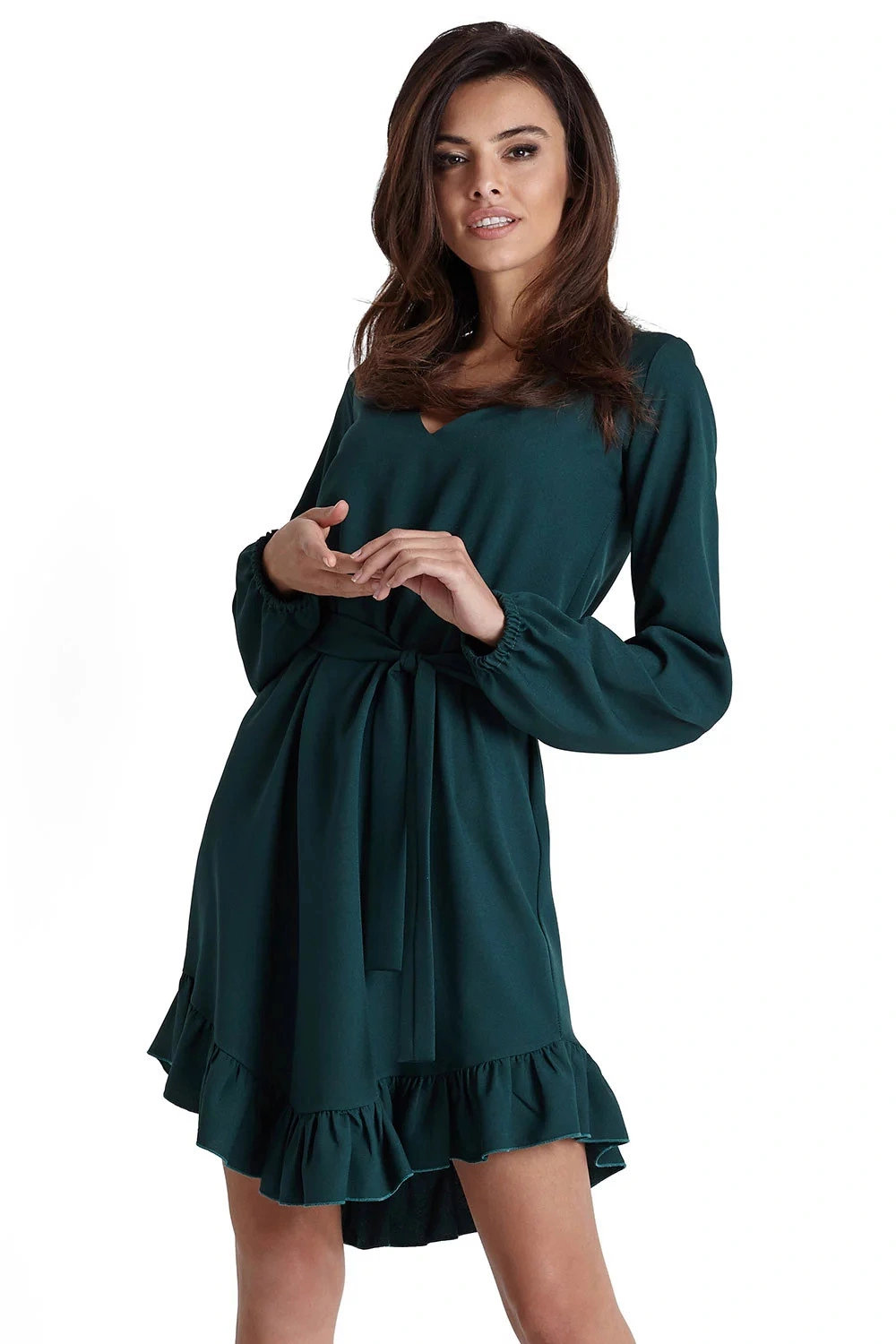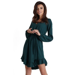 Asymetrická spodná časť šiat - ukončená volánom - dodáva šatám romantický charakter.