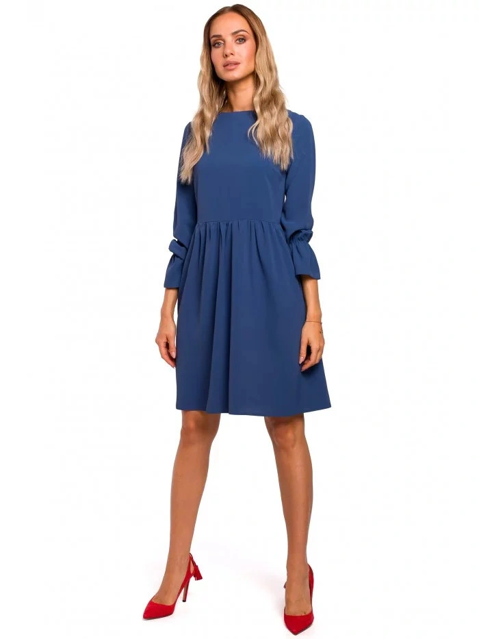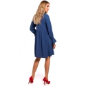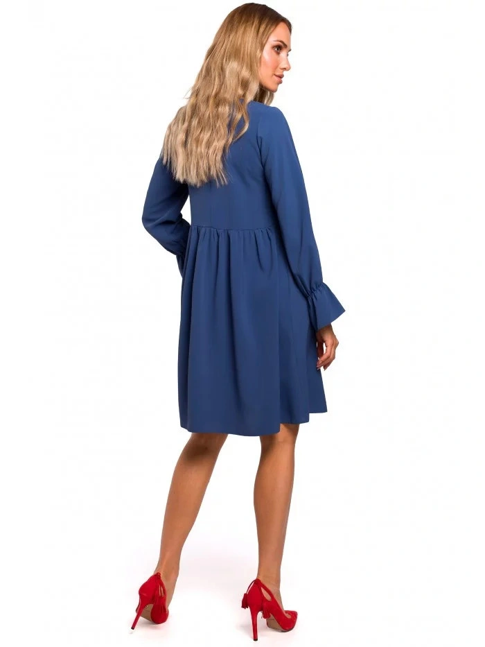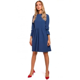 Šaty z tkanej látky s elastickým pásom dlhé rukávy s elastickým lemom a volánom dĺžka nad kolená bez podšívky náš model má 171 cm a nosí veľkosť S