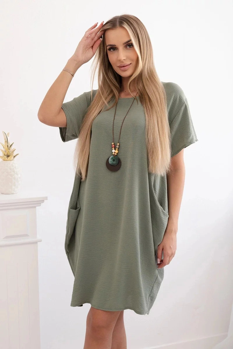 Tieto šaty s vreckami a príveskom sú praktickou a štýlovou voľbou pre ženy, ktoré si cenia pohodlie a eleganciu. Tieto šaty sú vyrobené z ľahkého a priedušného materiálu, vďaka čomu sa pohodlne nosia po celý deň. Ich ďalšou výhodou sú praktické vrecká, ktoré im dodávajú charakter a funkčnosť. Šaty zdobí aj jemný prívesok, ktorý im dodáva jemný šarm a odlišnosť. Tieto šaty sú ideálne na večerné vychádzky, stretnutia s priateľmi alebo každodenné nosenie, vďaka čomu sa budete cítiť pohodlne a štýlovo v každej situácii. Veľkosť je univerzálna a bude vhodná pre ženy, ktoré nosia veľkosť S, M alebo L.