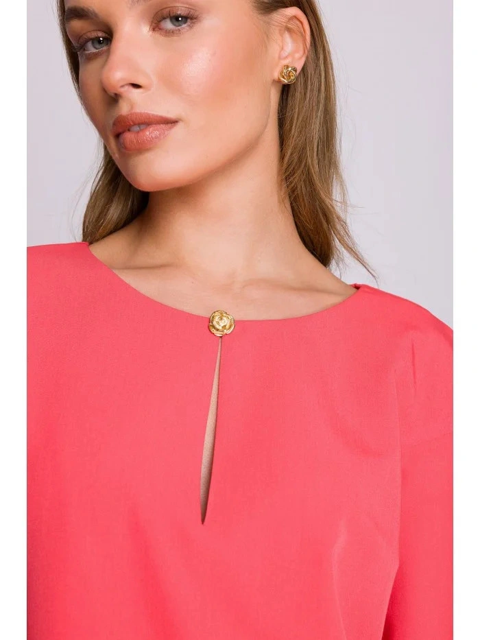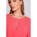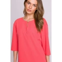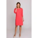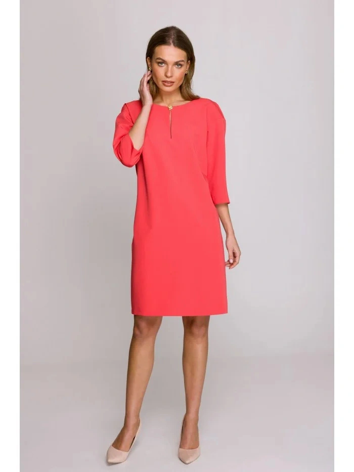 PODROBNOSTI O PRODUKTE: tkaný materiál uvoľnený strih šaty s dĺžkou nad kolená trojštvrťové rukávy rozdelený výstrih s ozdobným gombíkom skrytý zips na chrbte záhyb na chrbte bez podšívky Naša modelka je vysoká 175 cm a nosí veľkosť S navrhnuté a vyrobené v Poľsku