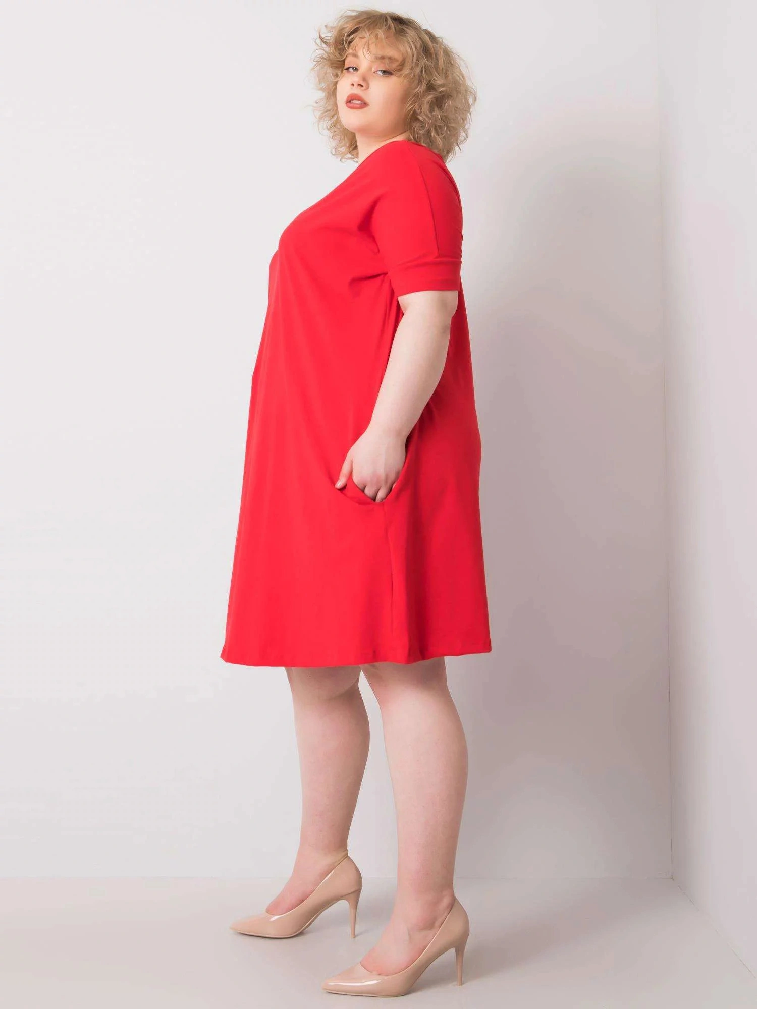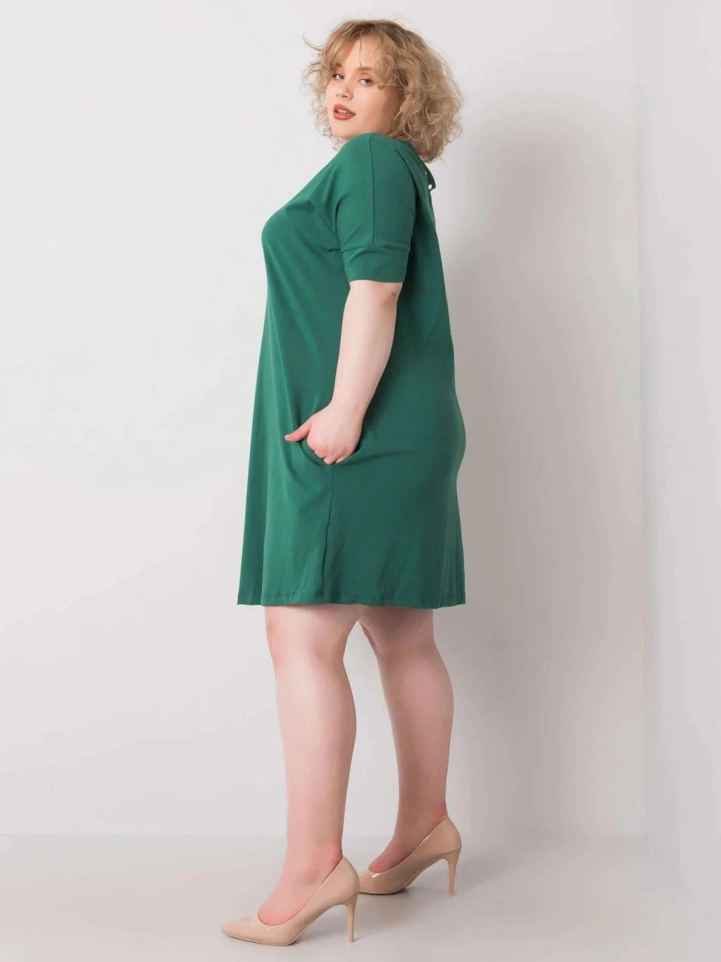 Modelka má na sebe veľkosť XL. Rozmery modelky: výška 172 cm, prsia 103 cm, pás 73 cm, boky 103 cm.