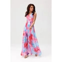 Šifonové maxi šaty se vyznačují promyšleným, velmi pohodlným střihem, který vám umožní cítit se na důležitých oslavách svobodně a pohodlně. Silná ramínka poskytují dobrou oporu, vrstvený výstřih zvýrazňuje poprsí a zúžený pas podtrhuje pas. Šaty jsou vyrobeny z lehké šifonové tkaniny a mají všitou podšívku, která zabraňuje průsvitnosti. Na zádech mají nápadný výřez, který vkusně odhaluje a obnažuje záda. Dlouhá, volně splývající sukně stydlivě odhaluje nohy díky rozparku na nohavici. Zapíná se vzadu na zip. Vzorované šaty Charlotte budou skvěle vypadat s doplňky v tlumených barvách. Vzhled krásně doplní béžová nebo bílá kabelka a sandály na podpatku. Doplňte je střídmými šperky a pro elegantní vzhled si k nim oblečte sako. Šaty se hodí na svatbu, křtiny, svaté přijímání i letní zahradní party.
