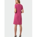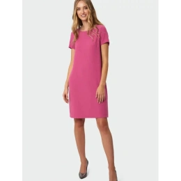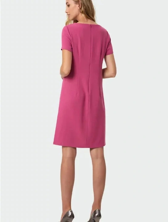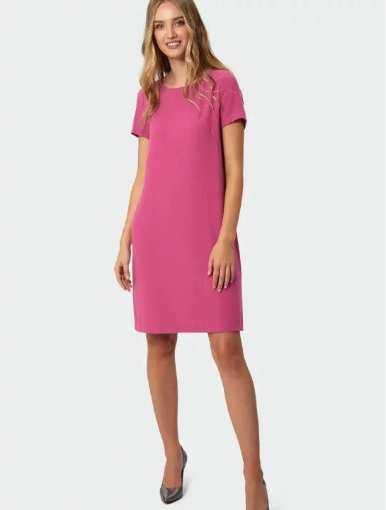 Dámske šaty ku kolenám, jednoduchého strihu, s krátkym rukávom, pri krku okrúhly výstrih.