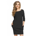 Športové šaty s lodičkovým výstrihom. Vrecko v bočnom šve. Zadný rez. Spodná časť, rukávy a výstrih zostali nevypracované.