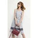 Svetlosivé šaty s tmavo modrými a bielymi ozdobnými prvkami.100% bavlna Pokyny pre starostlivosť: Pokyny pre pranie: Ručné pranie alebo profesionálne chemické čistenie Kolekcia: Jar/Leto Farba: Sivá Pohlavie: Ženské