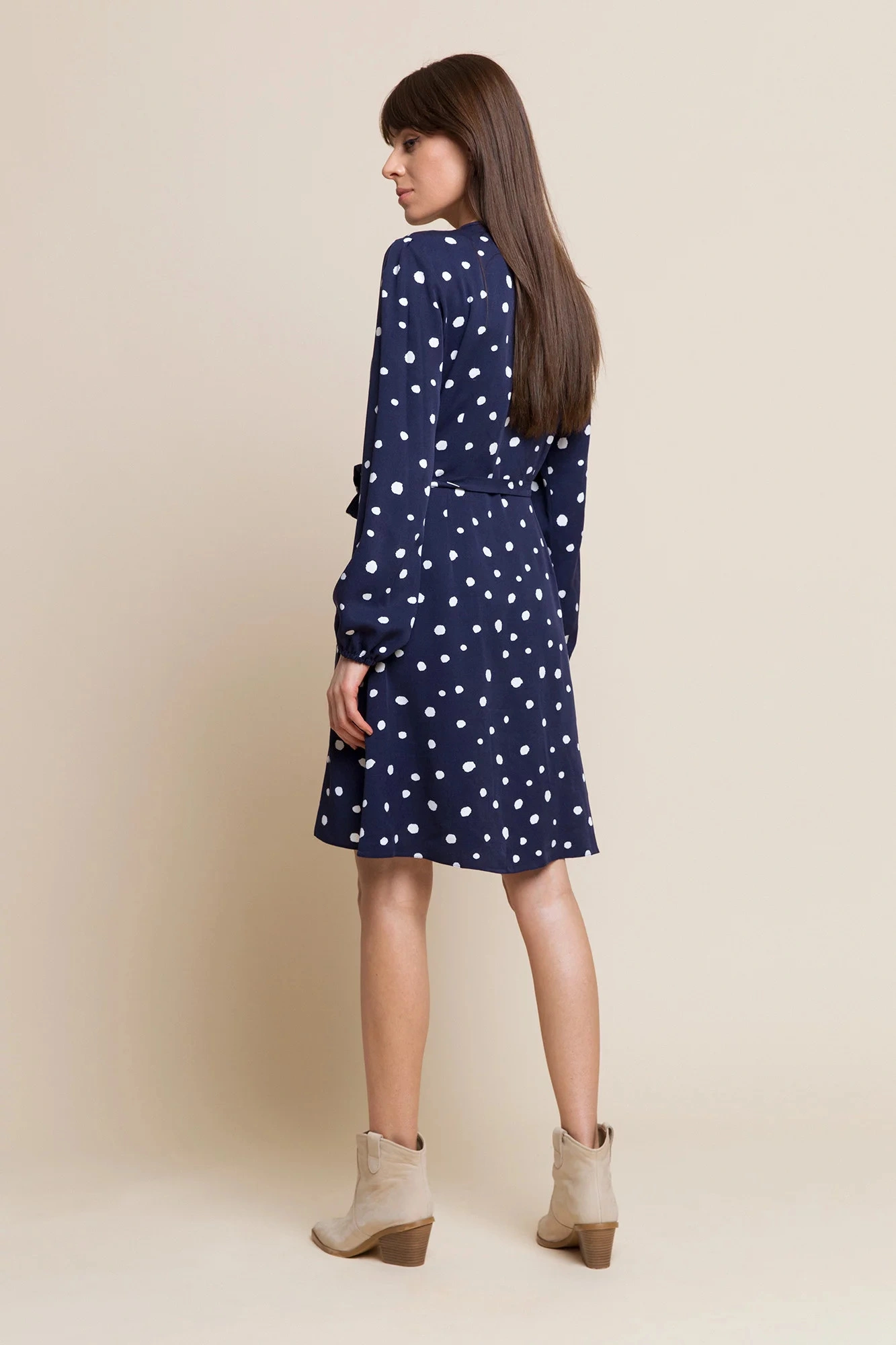 Wendy sú: šaty ku kolenám obálkového strihu s dlhými rukávmi zakončenými gumičkou a opaskom. Zvláštnou výhodou tohto modelu je zaväzovanie, ktoré umožňuje upraviť obvod šiat, vďaka čomu sa krásne prispôsobí tvaru postavy. Najjarnejší odtieň amarantu s jemnou potlačou, alebo klasická námornícka modrá s bielymi bodkami? Ktorý z nich si vyberiete tento rok na jar?