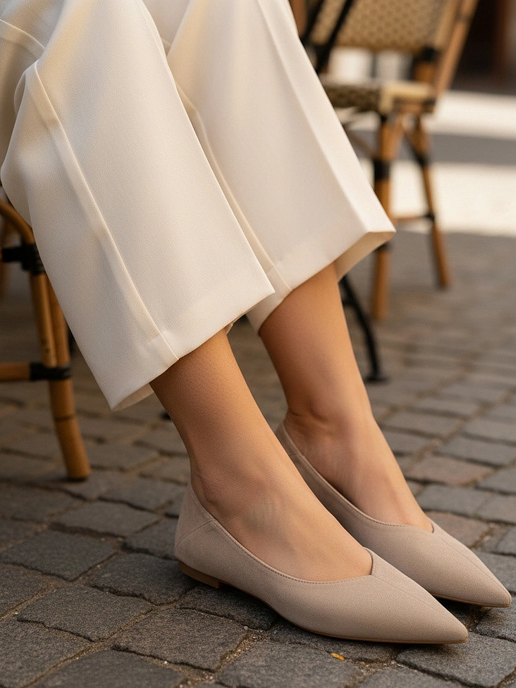 Balerínky sa dokonale hodia k elegantným nohaviciam, midi šatám alebo klasickému obleku do práce, na obchodnú schôdzku alebo každodennú mestskú štylizáciu, na jar a v lete sa dajú nosiť s ľahkými a vzdušnými materiálmi.