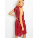 Modelka má na sebe veľkosť 38.Rozmery: výška 175 cm, prsia 84 cm, pás 65 cm, boky 92 cm.