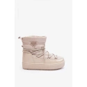 Dámske snežnice s hornou časťou nad členky. Vyrobené z kombinácie textilného materiálu a ekologickej kože. Stojí na pevnej platforme, ktorá dokonale izoluje od studenej zeme. Model Slip-on s lesklými šnúrkami. Zateplené kožušinou. Ideálne na chladné dni! Určite by ste si ich mali zaobstarať!