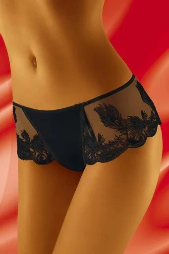 Wol-Bar Oshi - veľmi krásne a elegantné nohavičky - značka Wol-Bar. K dispozícii v čiernej a bielej farbe. Plný stred, boky z priesvitnej čiernej čipky s pekným vyšívaným motívom.