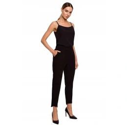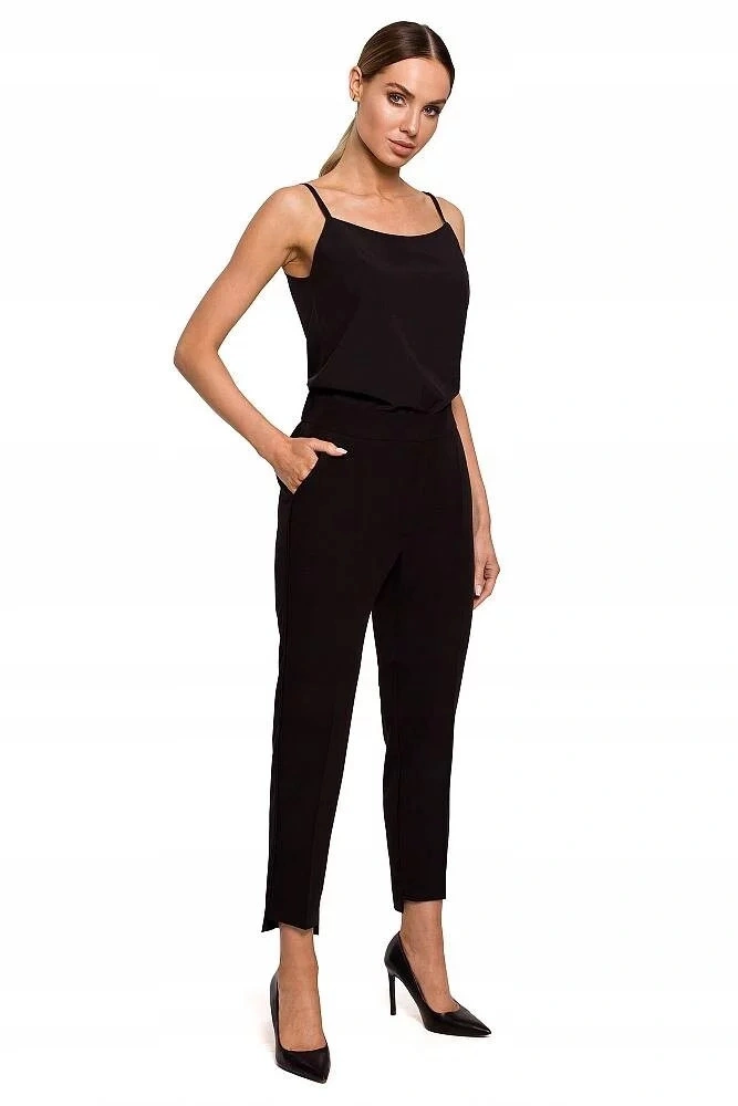 Dámske spoločenské nohavice, vzadu elastický pás, vpredu zips, gombík a patentka. Pekné prešité švy na bokoch, vpredu manžety na gombíky. Dĺžka nad členky.