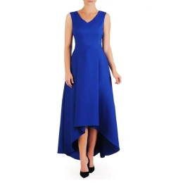 Šaty s vypasovaným horným dielom, v páse vykrojené. Šaty na podšívke, zapínanie na zips. Dole asymetrické, vzadu dlhšie a vpredu kratšie. Šaty majú vrecká. Ideálne pre mnoho príležitostí.