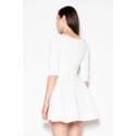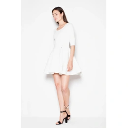 Penové šaty s rozšírenou spodnou časťou. 3/4 rukávy, okrúhly výstrih, široký strih dole pekne padne na postavu. Celok pôsobí veľmi žensky.