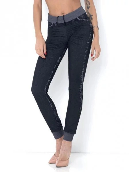 Dámske športové bezšvové džínsy so sťahovacou šnúrkou v páse a manžetovým zakončením nohavíc v spodnej časti. Vyrobené z mäkkého elastického materiálu, ktorý sa dokonale prispôsobí telu. Technológia použitá na vytvorenie týchto džínsov je použiteľná len na bezšvové výrobky. Špeciálny dizajn na zadnej strane vytvára prirodzený efekt zdola nahor - nadvihuje a zvýrazňuje zadok. Veľmi dobrá pevnosť a odolnosť voči praniu.